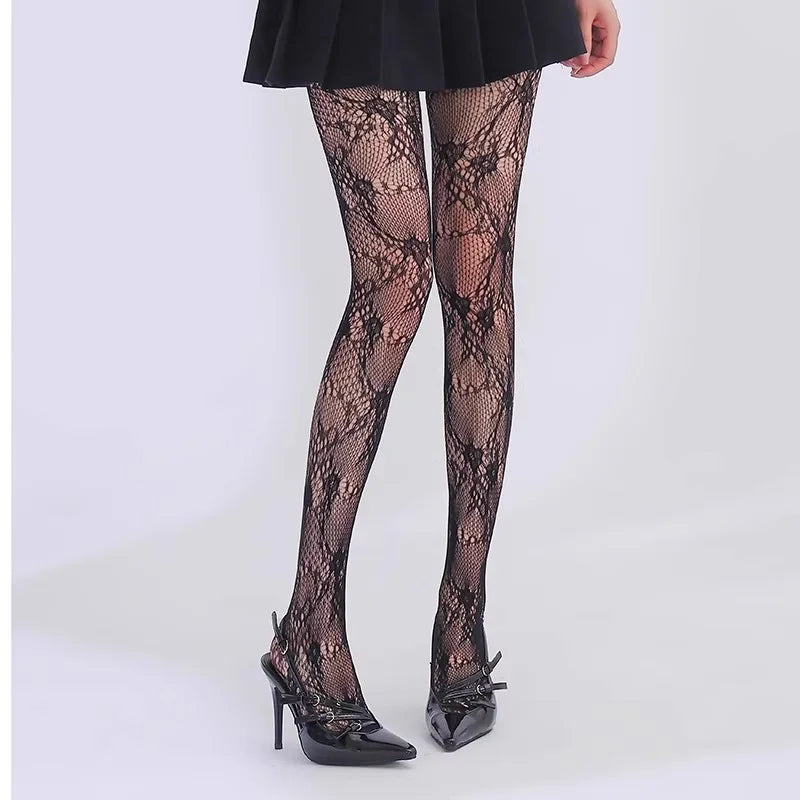 🖤 Pattern: Floral fishnet — botanical darkness woven into every thread